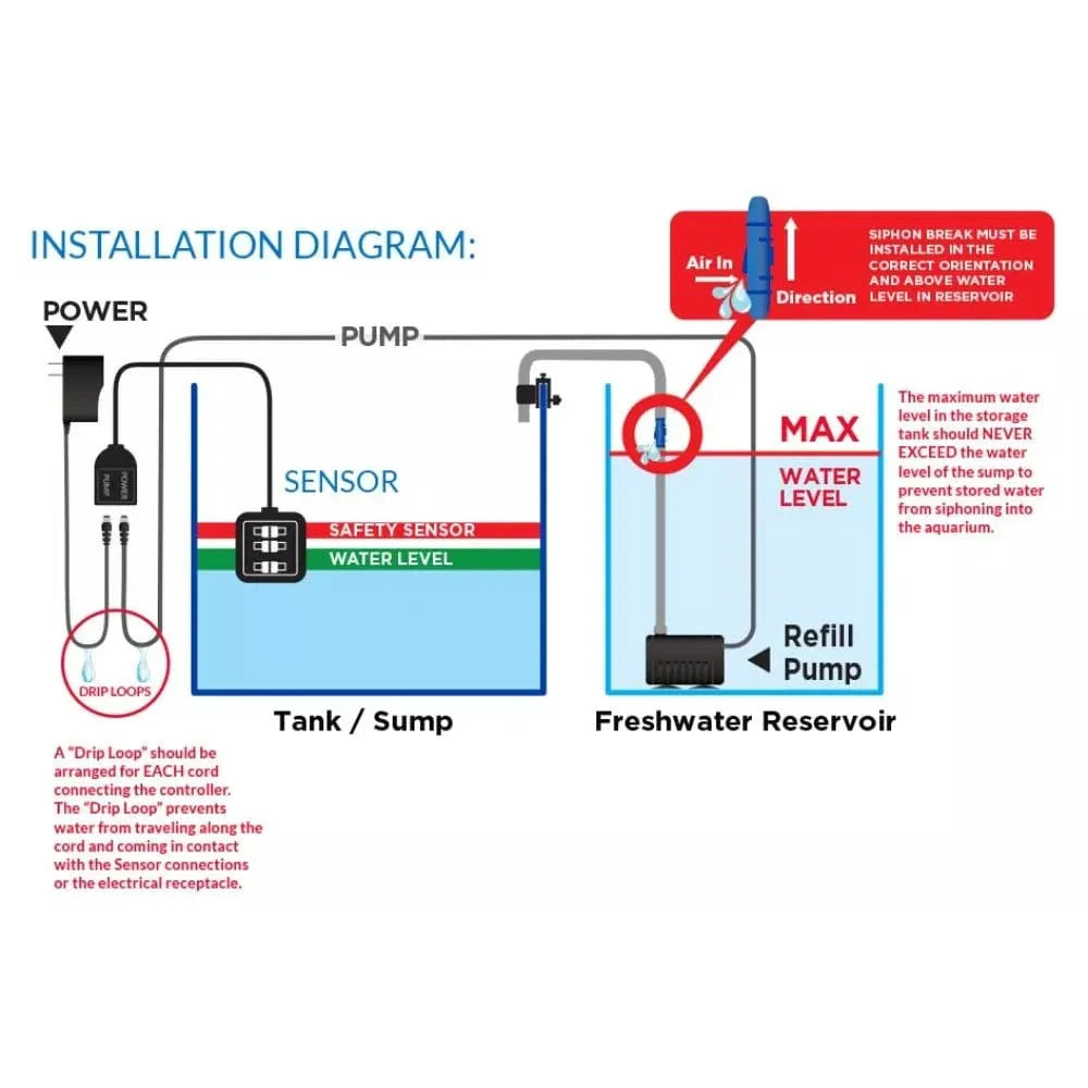 Installation is a breeze - simply move the magnet optical sensor to the desired water level in the return section of your sump and install the pump in your favorite ATO reservoir with the supplied tubing and accessories.