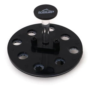The IceCap Transport Container is a water-tight container that holds up to 8 coral frags. Inside the container sits a round frag rack with 8 cutouts to hold your frags. Each cutout has a special membrane inside to lock your frags in place. In the center of the frag rack is a post with a handle on top so you can easily lift and lower the rack into the carrier without getting your hands wet. The post and flat-handle top also keep the rack from moving around inside the carrier. The rack itself does not rest on the bottom of the carrier. There are feet on the bottom so your plugs have space to slide in and stay put instead of getting pushed back up and out of the tray.