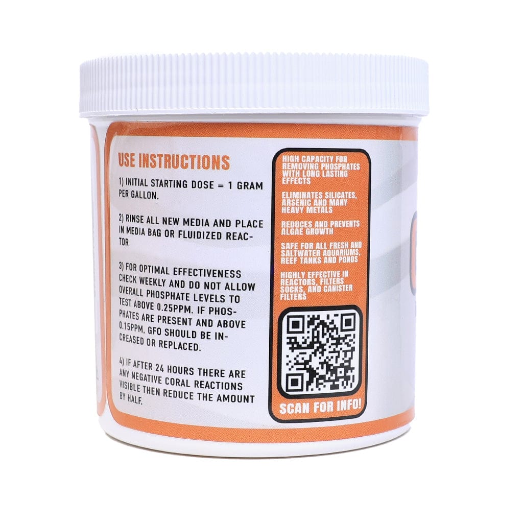 Reef Genetics GFO (Granular Ferric Oxide) Phosphate Reducer fights harmful algae in fresh and saltwater aquariums by eliminating their phosphate food source. If left unchecked, high phosphate levels can inhibit coral growth and coloration as well as cause unsightly algae growth.