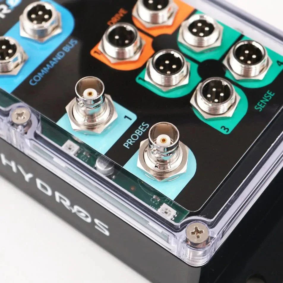 HYDROS devices look like industrial controllers because they are built to function in the harsh environment of a marine aquarium. The IP65 rated HYDROS enclosure, and aircraft-style connectors ensure long-term reliability in the face of splashes and corrosive salt spray.