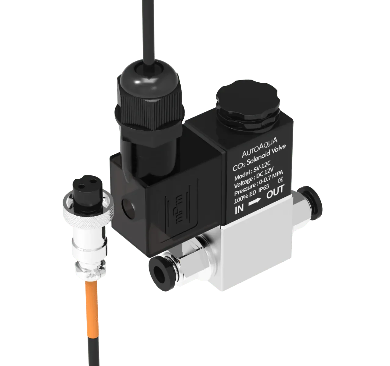 The HYDROS DC CO2 Solenoid Valve is an Official HYDROS Accessory manufactured by AutoAqua in Taiwan. Creators of the Smart ATO Micro, AutoAqua is one of the most well-known and trusted makers of aquarium automation systems in the hobby today. CoralVue has thoroughly tested the CO2 Solenoid Valve to ensure seamless compatibility with the HYDROS platform. The product development team at CoralVue engineered the solenoid so it connects with a Drive Port on the controller using an aviation-style plug for safer operation. No additional power source is needed to run the solenoid.