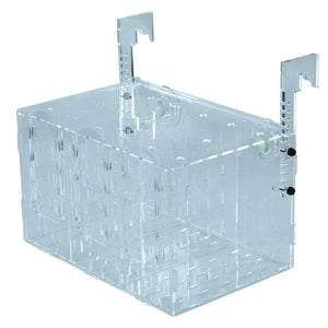The IceCap In-Tank Fish Isolation Boxes are designed to easily disassemble and include height-adjustable mounting hooks. The box can be conveniently hung inside the aquarium, allowing simple installation and removal. These boxes are made with clear acrylic for durability and to allow for easy observation of the specimen inside. Water circulation slots ensure good water flow, providing a healthy environment for your aquatic creatures.