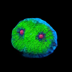 Chalice corals are a striking group of LPS (Large Polyp Stony) corals prized for their vivid colors and intricate patterns. Species such as Echinophyllia and Oxypora are known for their encrusting or plating growth forms, which add a unique texture to reef aquariums. Their vibrant shades of pink, orange, green, and purple, often highlighted with contrasting “eyes” and ridges, make them a favorite among collectors.