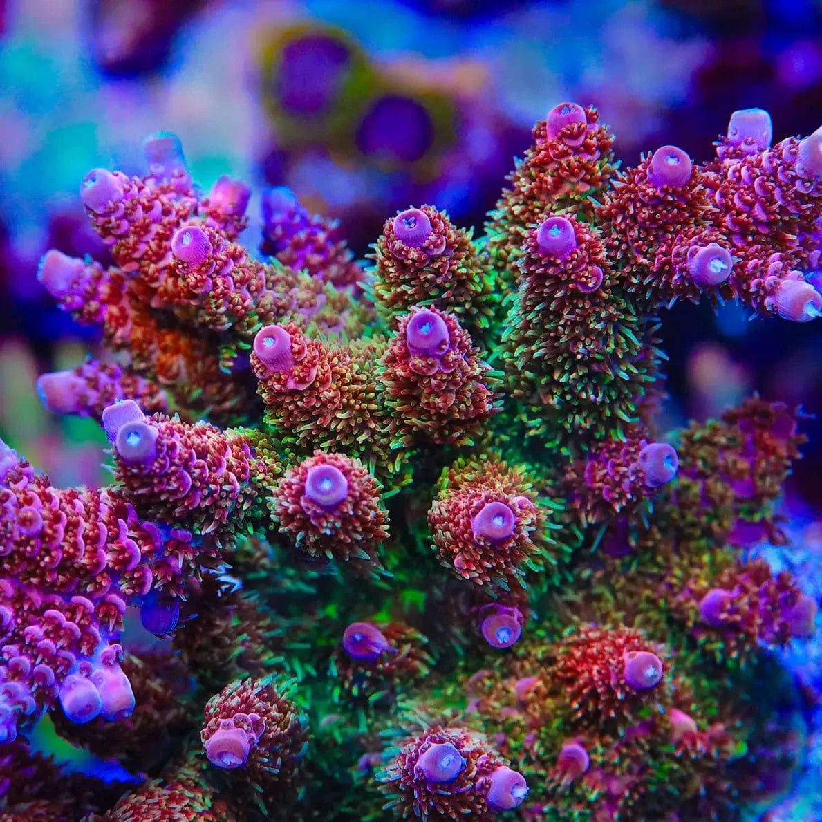 Acropora corals are the centerpiece of many advanced reef systems, boasting an incredible variety of species such as Acropora tenuis (Tenuis), Acropora formosa (Stag), Acropora millepora (Millie), and many more. Each species offers its own unique growth patterns, colors, and textures, with some of the most vibrant coloration found in the reefing world. While they require careful attention and stable tank conditions, Acropora reward dedicated reefers with dynamic growth and striking displays of color.
