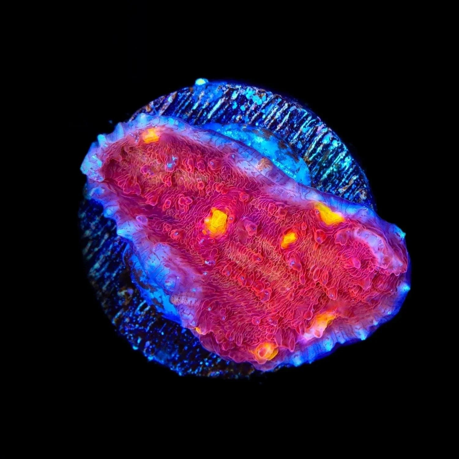 Propagation begins by selecting healthy parent colonies and fragging them with precision to minimize stress. Each frag is securely mounted with reef-safe glue or epoxy and placed in grow-out tanks where they are monitored for growth and coloration. This sustainable process ensures we provide aquacultured Chalice corals that are well-suited for reef tanks and help promote sustainable practices within the reefing hobby.