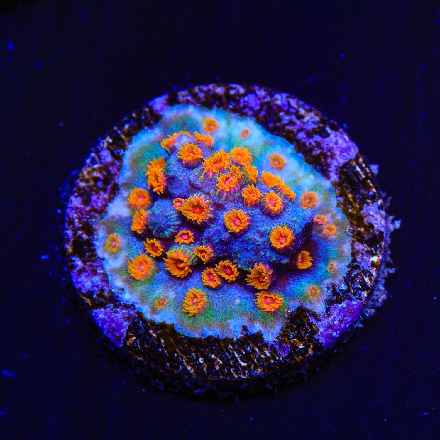 These SPS are renowned for their vibrant coloration, featuring rainbow hues such as neon greens, deep reds, blues, and intricate multi-color combinations. Their encrusting growth patterns and textured appearance make them a standout addition to reef tanks. Proper lighting, water quality, and supplemental feeding are key factors in maintaining their stunning colors.