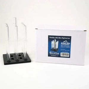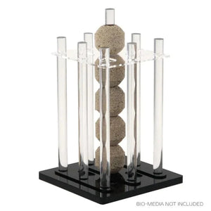 The IceCap Bio-Sphere Media Tower is a simple structure that allows the stacking of five Bio-Sphere Balls on each of its nine support rods to provide a more visually pleasing way of containing up to 45 total bio-sphere biological media. The stacking of the media will increase filtration efficiency when compared to placing the media in a detritus-collecting mesh bag in the sump. Bio-Sphere media are sold separately and designed to work with IceCap, Maxspect, and Mantis Nano-Tech Bio-Sphere media, all sold separately.