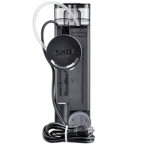 The Tunze Comline DOC skimmer utilizes Tunze's "Flash Skimming" principle. The skimmer is quiet and generates a very large volume of small bubbles for efficient skimmer operation. It operates stand-alone without needing any additional equipment (feed pumps, etc) and mounts to the tank via a convenient magnet holder strong enough for glass up to 1/2" thick.