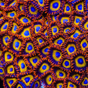 Zoanthids are one of the most popular corals in the reef-keeping hobby, admired for their vibrant, fluorescent colors and rapid growth. These soft corals form colonial mats of individual polyps, creating stunning carpets of color that can quickly transform reef aquariums. Popular varieties like “Rastas,” “Eagle Eyes,” and “Pandoras” showcase the incredible range of patterns and hues Zoanthids have to offer, making them a favorite among hobbyists of all experience levels.