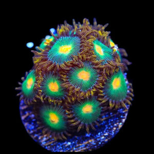 These colonial polyps attach themselves to hard substrates such as rocks, rubble, or dead coral skeletons, creating dense mats or carpets. In their natural habitat, Zoanthids contribute to the biodiversity of the reef, offering shelter and surface area for small reef inhabitants like shrimp, crabs, and gobies.