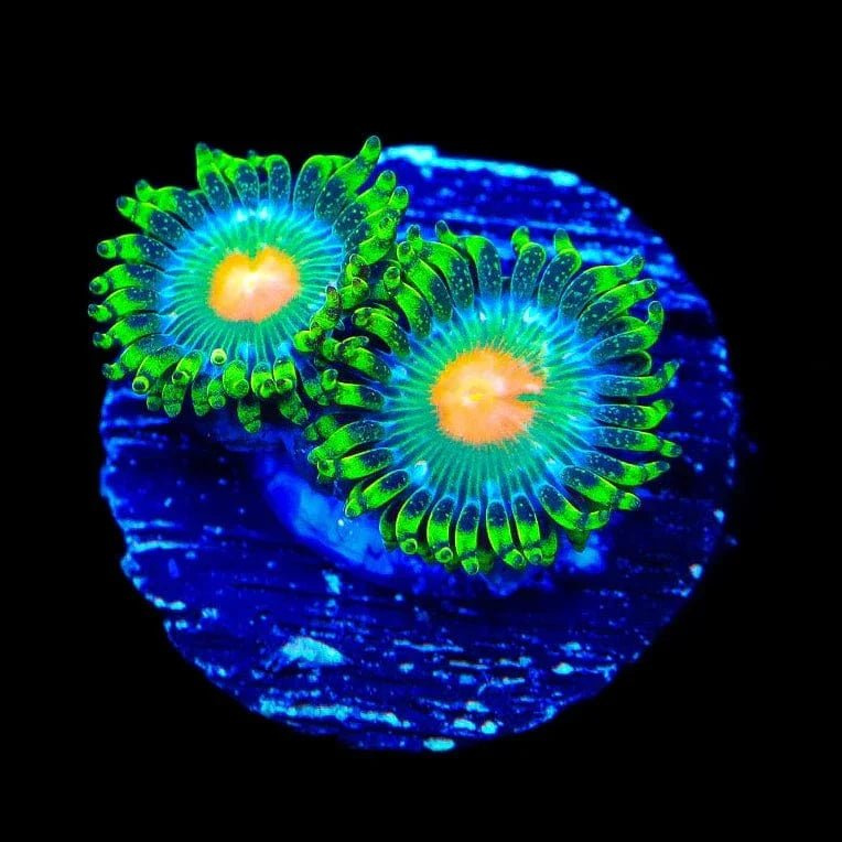 Feeding Zoanthids with nutrient-rich foods like Reef Roids, amino acids, and plankton blends supports their pigmentation and overall health. Stable water parameters and trace elements, such as iodine and iron, further enhance their vibrant appearance.