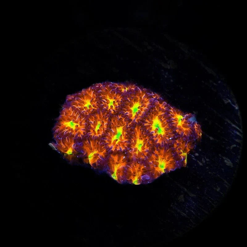 Once settled, Leptastrea steadily encrust rock surfaces, forming a textured layer of colorful coral that adds depth and interest to your aquascape. Regular care—including consistent calcium and alkalinity levels—ensures healthy skeletal growth and vibrant coloration, allowing them to become a subtle yet eye-catching feature in your reef tank.