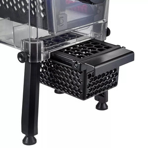 The ReefMat comes fully assembled, straight out of the box. Designed to hang on a sump wall to conserve space, but also including mounting legs, you can place the ReefMat anywhere you want in your sump that has the space avaialble. Both the drive unit and inlet hose can be positioned on either side of the ReefMat making installation work for any sump set up.