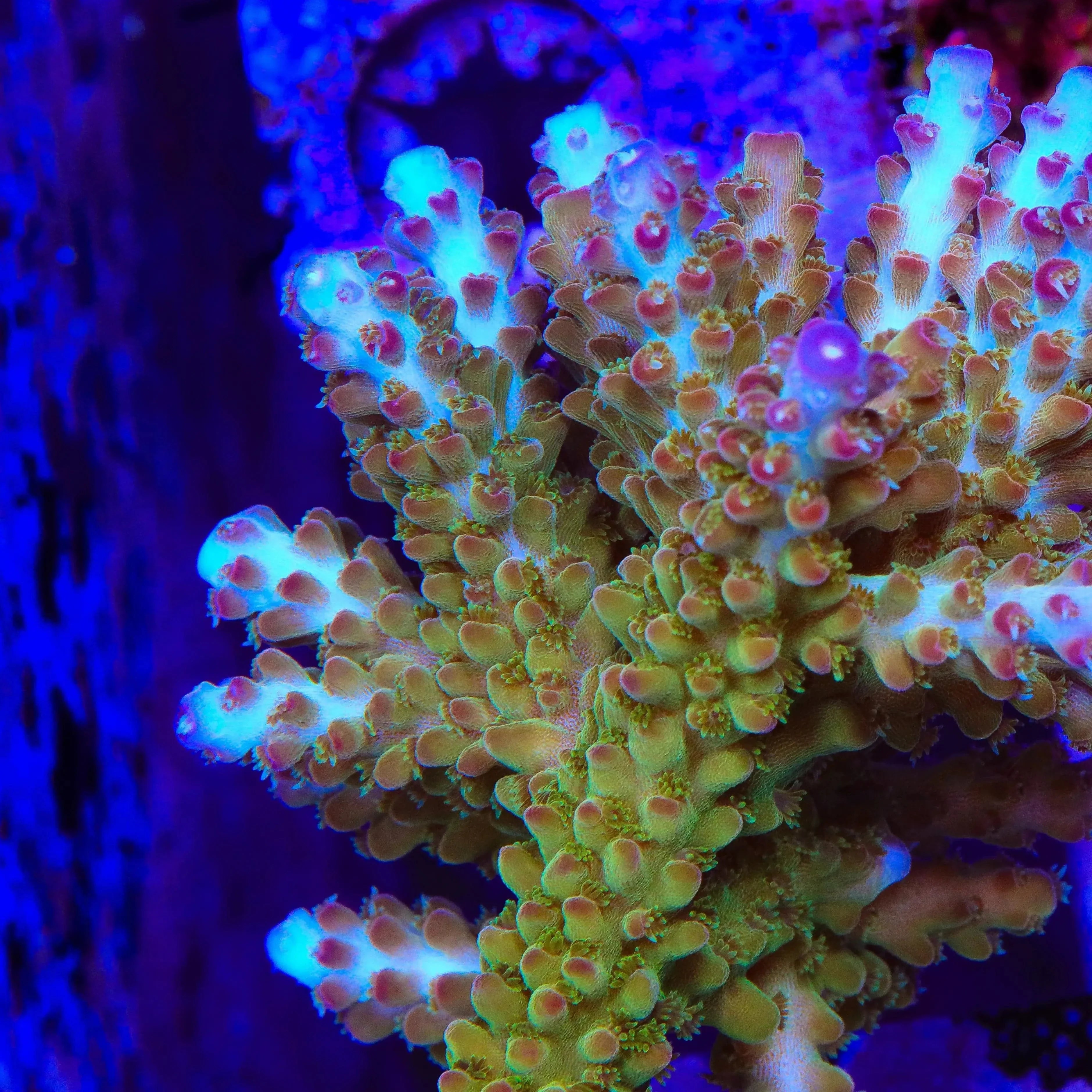 Acropora corals are the centerpiece of many advanced reef systems, boasting an incredible variety of species such as Acropora tenuis (Tenuis), Acropora formosa (Stag), Acropora millepora (Millie), and many more. Each species offers its own unique growth patterns, colors, and textures, with some of the most vibrant coloration found in the reefing world. While they require careful attention and stable tank conditions, Acropora reward dedicated reefers with dynamic growth and striking displays of color.