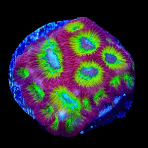 Favia corals are celebrated for their vivid coloration, often displaying shades of green, red, gold, and even multi-color combinations. Maintaining these hues requires stable water
