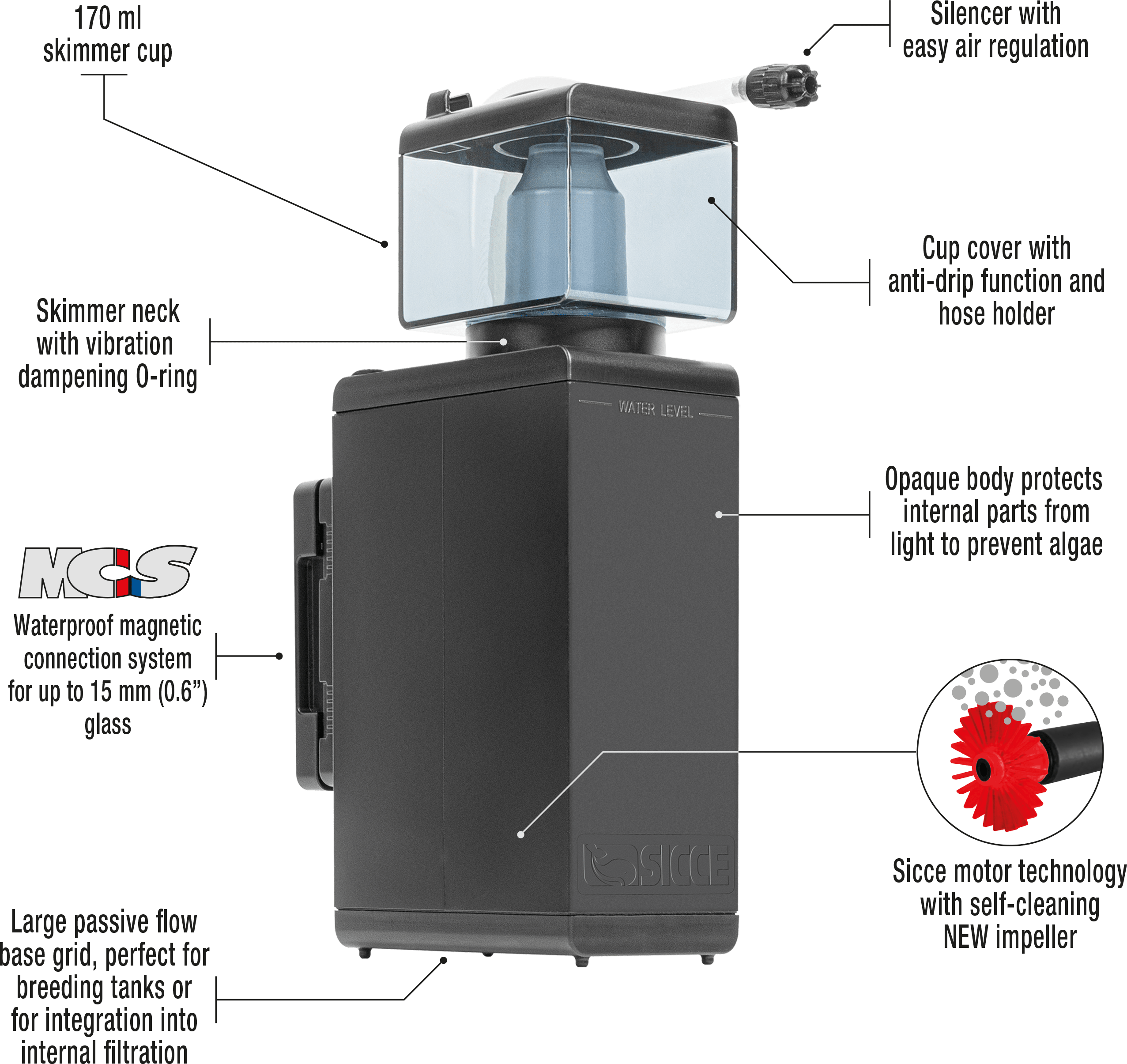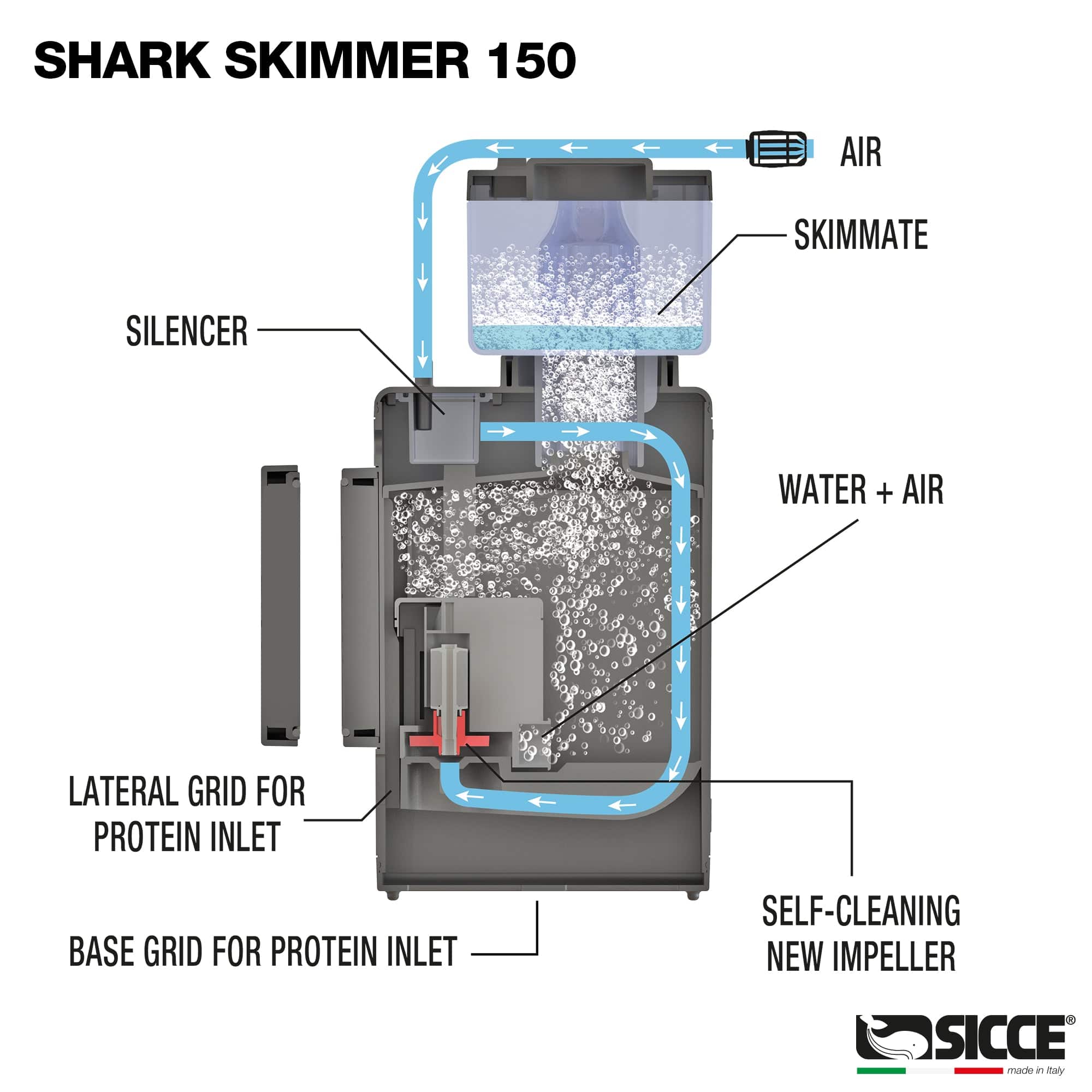 - Compact and Discreet: The Shark SKIMMER 150 boasts a sleek design that blends seamlessly into your aquarium, while its opaque body prevents algae growth by shielding internal components from light.