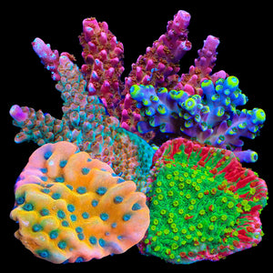 Packs Contain premium Acros, Encrusting, Grafted, and Palawanesis Monti, Anacropora, and Chunky Beginner Frags