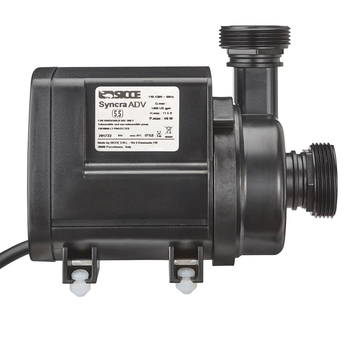 The volute can be rotated 360o for the ultimate versatility if you want to use the Syncra ADV for a return pump, closed loop system, reactor, or any other purpose they are made to fit your application. The new oversized rubber feet help protect against vibrations on all sides of the pump and not just the bottom. Now you can fit the pump in tight spaces without having to worry about noise being created from your pump contacting the side glass. The ceramic impeller shaft and bearings provide unmatched smoothness for energy saving and even more noise reduction over the traditional Syncra line of pumps.