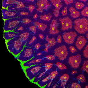 At Top Shelf Aquatics, we use a combination of Ecotech Marine Radions and metal halides to create balanced lighting conditions that promote healthy growth and rich coloration for our Favia specimens.