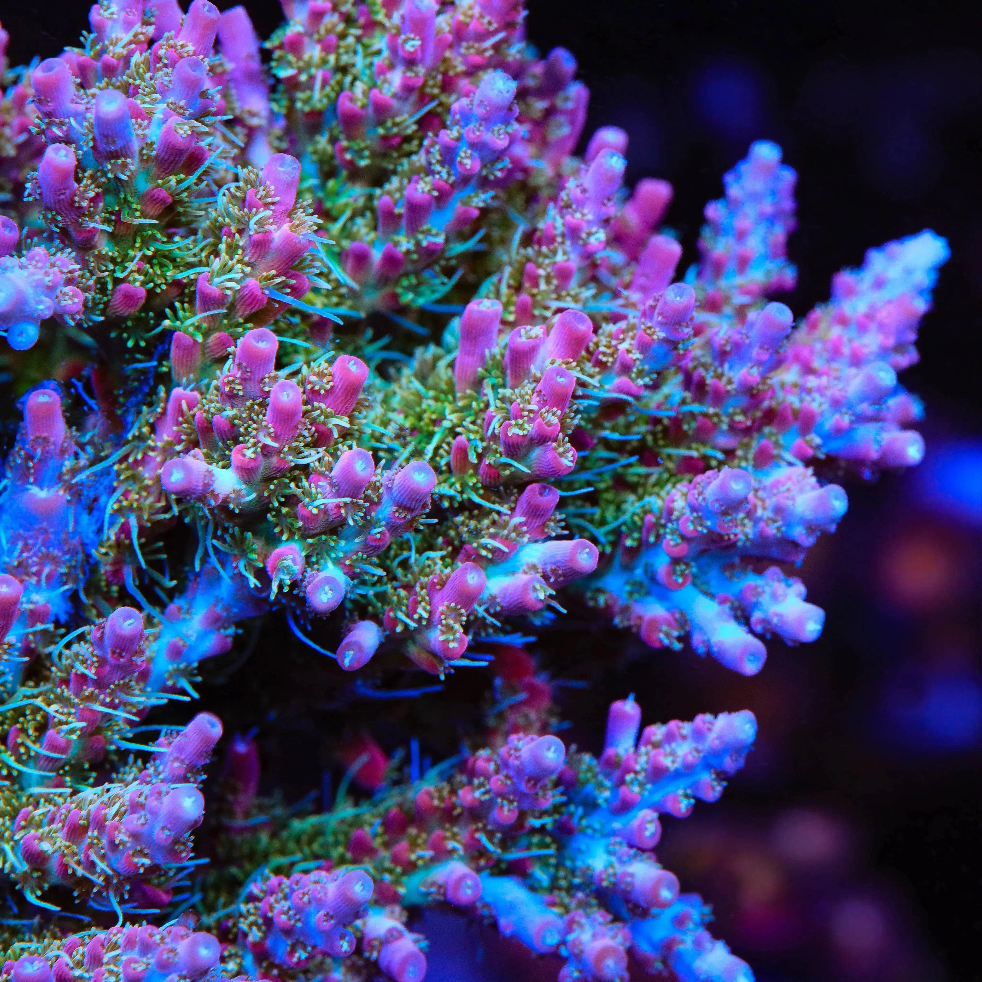 Acropora corals are the centerpiece of many advanced reef systems, boasting an incredible variety of species such as Acropora tenuis (Tenuis), Acropora formosa (Stag), Acropora millepora (Millie), and many more. Each species offers its own unique growth patterns, colors, and textures, with some of the most vibrant coloration found in the reefing world. While they require careful attention and stable tank conditions, Acropora reward dedicated reefers with dynamic growth and striking displays of color.