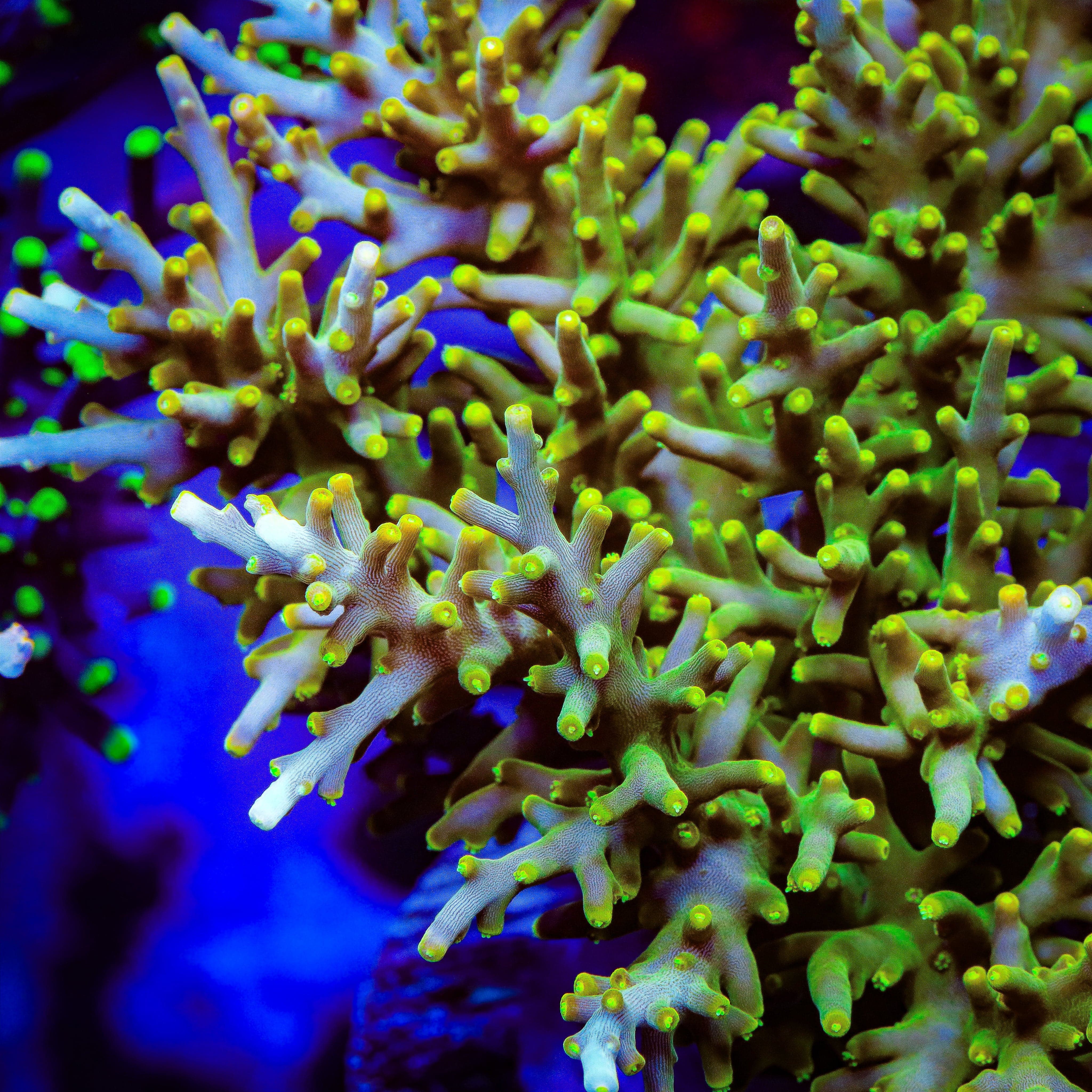 Acropora corals are the centerpiece of many advanced reef systems, boasting an incredible variety of species such as Acropora tenuis (Tenuis), Acropora formosa (Stag), Acropora millepora (Millie), and many more. Each species offers its own unique growth patterns, colors, and textures, with some of the most vibrant coloration found in the reefing world. While they require careful attention and stable tank conditions, Acropora reward dedicated reefers with dynamic growth and striking displays of color.