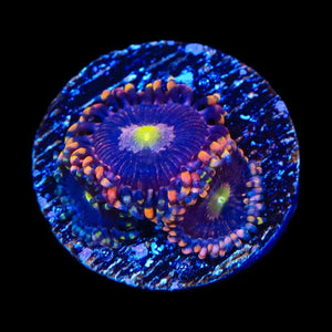 Feeding Zoanthids with nutrient-rich foods like Reef Roids, amino acids, and plankton blends supports their pigmentation and overall health. Stable water parameters and trace elements, such as iodine and iron, further enhance their vibrant appearance.