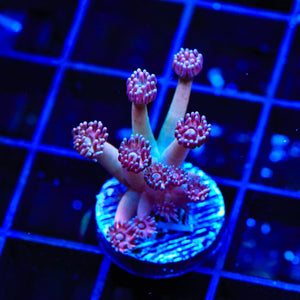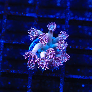 Typically showcasing hues of green, yellow, pink, or purple, Goniopora corals create a mesmerizing display as their polyps extend and sway with the flow of water. Known for their moderate care requirements and adaptability, they are an excellent choice for intermediate reef keepers looking to add a dynamic focal point to their aquascape.