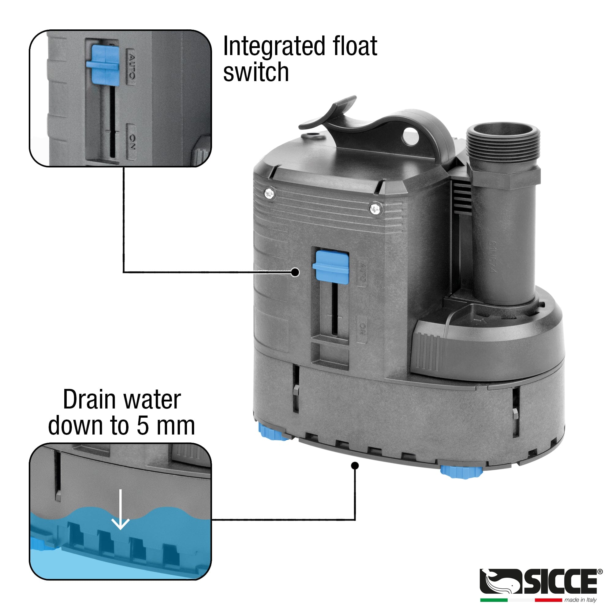 1. Advanced Technology: Equipped with state-of-the-art engineering, the Ultra 9000 delivers unparalleled efficiency and performance, ensuring rapid drainage with minimal energy consumption. The Ultra 9000 features an integrated safety float switch, adjustable feet to regulate size of intake, drainage capacity down to 5mm, a convenient carry handle, and simple side access for maintenance, drawing only 110 watts of power.