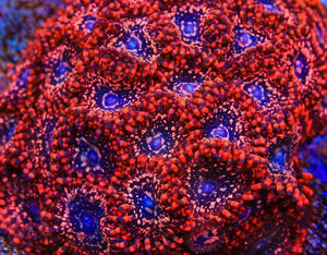 Feeding Zoanthids with nutrient-rich foods like Reef Roids, amino acids, and plankton blends supports their pigmentation and overall health. Stable water parameters and trace elements, such as iodine and iron, further enhance their vibrant appearance.